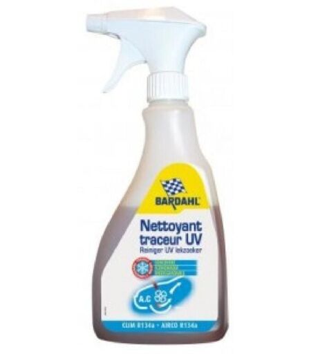 Nettoyant traceur climatisation - 500ml Quand l'utiliser - Permet de nettoyer la station de charge et accessoires. Propriétés - Formule concentrée économique. - Enlève rapidement toute trace de traceur UV. - S'utilise sur tout type de support (caoutchouc, aluminium, plastique, fonte,...). Mode d'emploi Pulvériser le nettoyant UV Bardahl sur les sufaces - Laisser agir - Essuyer avec un chiffon. S'utilise dans le compartiment moteur. Préconisations Recommandé par le plus grands constructeurs. ...