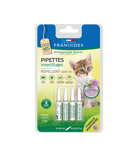 FRANCODEX-Soin Chat - Francodex Pipettes antiparasitaires insectifuges Chatons moins de 2 kg - 4 x 0,6 ml