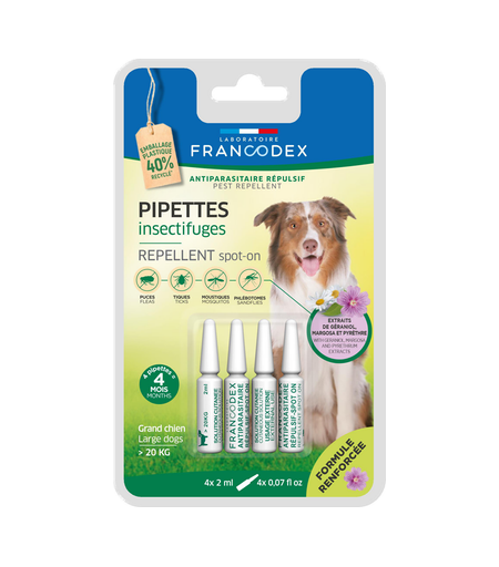 FRANCODEX-Soin Chien - Francodex Pipettes antiparasitaires insectifuges Grands Chiens plus de 20 kg - 4 x 2 ml