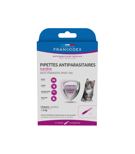 FRANCODEX-Soin Chat - Francodex Pipettes antiparasitaires spécial chaton Icaridine - 4 x 0,6 ml