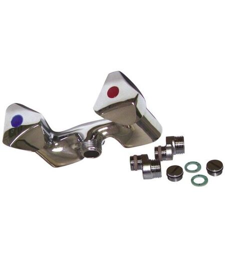 Croisillon en métal Tête à clapet avec 2 bouchons et raccords M1/2" excentrés de 12 mm Finition chromée Entraxe de 55 à 155 mm Sortie douche mâle 1/2" ...
