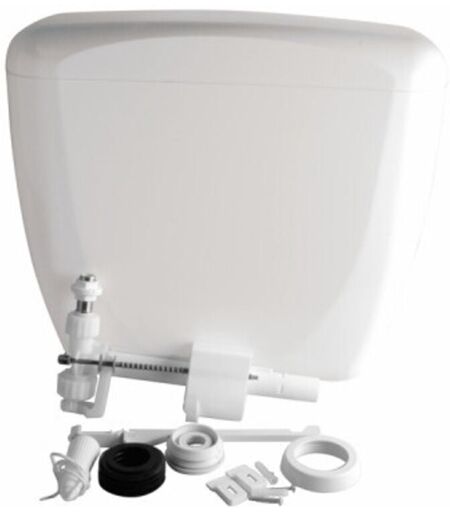 Garantie 10 ans Pour cuvette posée au sol ou WC à la turque Installation haute Fixation murale Commande par cordon et poignée Cuve et couvercle traités anti UV Aspect céramique Réservoir 9l Mécanisme de chasse préréglé 6l Alimentation latérale droite ou gauche Connexion M3/8"" Joint de réservoir pour tube descente 32mm Largeur 430mm Hauteur 400mm Profondeur 150mm Information relative à la sécurité : Avant toute intervention couper l'alimentation en eau ...