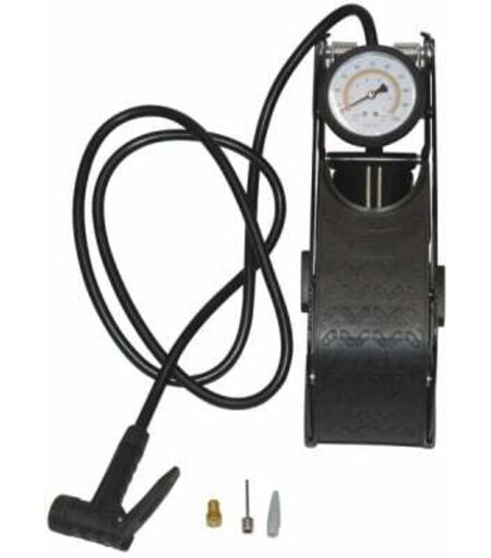 Pompe à pied avec manomètre 0 à 7b gradué en PSI, kg/cm2, kPa, bar Livrée avec flexible de longueur 1,5m Raccord clipsable Pédale antidérapante Poids 1,5kg Dimensions 290x100x100mm Information relative à la sécurité : Le port des gants est essentiel pour protéger vos mains contre les risques de blessures et garantir votre sécurité pendant les manipulations ...