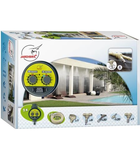 Kit complet brumisation Jardibric BRU071 – temporisateur, 10m tuyau, 6 jonctions, 20 pinces, buses 2 bars