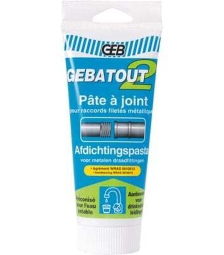 Tube Gebatout 2 : 250g GEB - 103960 Fonctionnalités : Pâte à base de polymères synthétiques pour l'étanchéité des filetages métalliques, raccords de robinets, vannes, manomètres, ... Domaine d'application : S'utilise dans les domaines du chauffage et de la plomberie pour l'étanchéité de toute partie filetée métallique (vannes, robinets, manomètres, canalisations) Pour l'étanchéité aux gaz ou aux produits chimiques sous fortes pressions (supérieures à 5 bars) Et sous de fortes t empératures (jusqu'à 150°C) préférer notre gamme GEBETANCHE. Tenue à la pression hydraulique (en association avec notre filasse de lin): supérieure à 200 bars sur raccords de 1" (26×34). Caractéristiques techniques : Aspect : pâte verte fluide. Densité : 1,5. Tenue à la température : 135 °C. Produit fluide pour un meilleur mouillage de la filasse. S'utilise avec filasse pour l'eau chaude ou froide. GEBATOUT 2 est conseillé pour l'eau potable. S'utilise seul pour les gaz tels que gaz naturel ou vapeur d'eau sous ...
