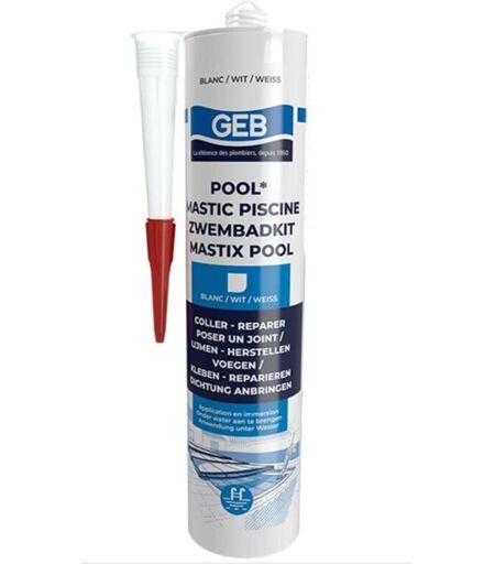 Description générale Le mastic piscine MS Polymère est un produit de qualité professionnelle conçu pour réaliser des collages, des joints et colmater des fuites, même sous l'eau. Idéal pour les piscines, spas et balnéothérapie, ce mastic neutre sans isocyanate offre une excellente adhésion et résistance dans des conditions humides. Il est disponible en plusieurs coloris : transparent, blanc, beige, bleu clair et gris. Spécifications techniques Cartouche de 290 ml Matière : Mastic-colle élastomère neutre à base de MS Polymère Dureté shore A : 35 (transparent) et 60 (autres coloris) Température de service : de -40 °C à +90 °C Résistance aux UV et intempéries Temps de lissage : 5 à 8 minutes selon le coloris Module de rupture (DIN 53504) : 1.8 MPa (transparent) et 3.1 MPa (autres coloris) Température d’application : de +5 °C à +40 °C Compatibilité et accessoires Adhésion excellente sur : polyester, PVC, béton, bois, céramique, inox, aluminium, etc. Ne pas appliquer sur PE, PP, PA, PTFE ...