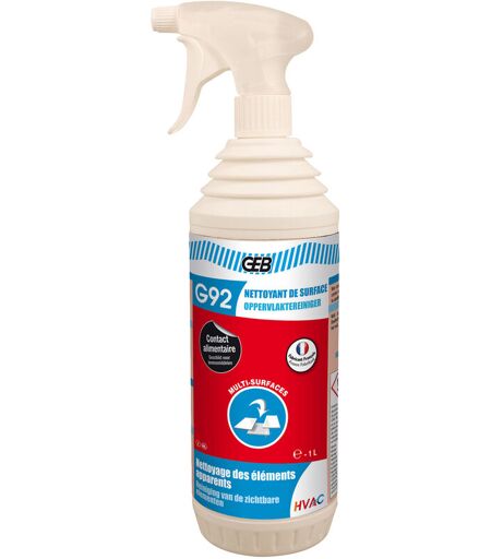 Nettoyant/Dégraissant surface multi-support-Pulvérisateur 1L Spray 1 litre de nettoyant de surface GEB. Pour le nettoyage des bouches de ventilation et des coffrages des systèmes de climatisation. Prêt à l'emploi. Caractéristiques ...