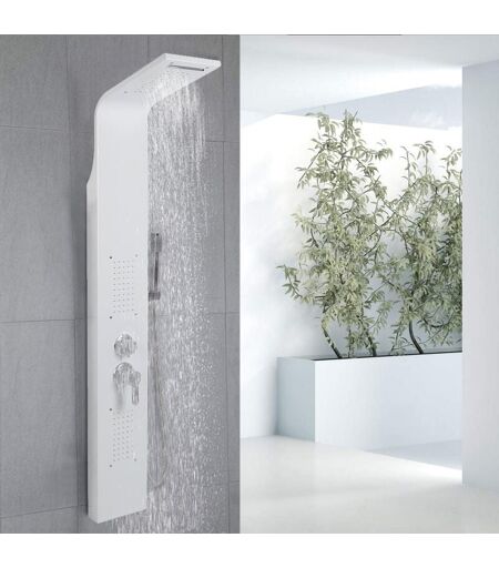 WYCTIN Hofuton Colonne de Douche en Acier Inoxydable avec Jet de Massage, Buses de Massages et Douche Manuelle, pour Salle de Bain/Hôtel(Blanc)