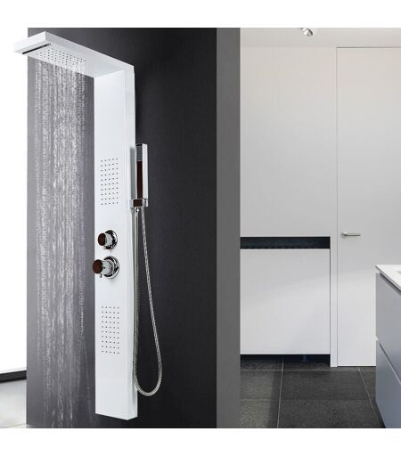 SKECTEN Système de panneau de douche acier inoxydable carré - blanc