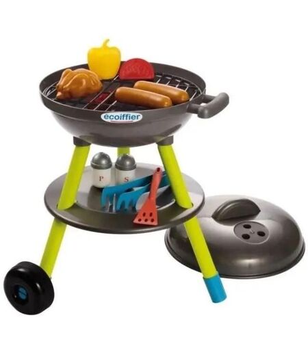 Un Petit Barbecue en Famille Ce barbecue est le parfait reflet de celui des grands : il est équipé de roues, d'un couvercle avec tirage et vous permet de cuisiner des grillades comme un véritable chef. Dans Mon Barbecue, Il Y A : 6 morceaux de charbon, 1 grille, 1 salière, 1 poivrière, 1 pince, 1 spatule, 2 saucisses, 1 tomate, 1 poivron, 1 poulet. Tous les accessoires sont en plastique alimentaire. Pour S'Amuser à l'Extérieur Jouets Ecoiffier propose des jeux de plein air avec différents thèmes et couleurs pour accompagner les enfants au bac à sable, dans le jardin ou à la plage. Jouer pour Mieux Grandir C'est en imitant les adultes et en manipulant diverses sortes de jouets que les enfants apprennent à appréhender le monde qui les entoure, devenant ainsi plus habiles et autonomes au quotidien. Des Jouets Origine France Garantie Jouets Ecoiffier est une entreprise familiale qui fabrique tous ses jouets en France. ...