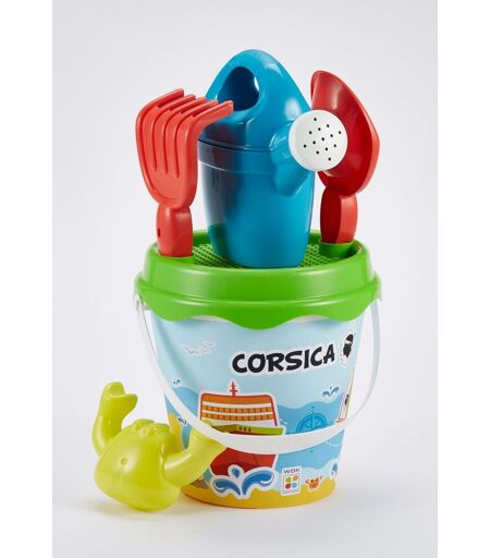 Un seau de 17 cm décoré sur le thème de la CORSE, garni d¿un tamis, d¿un arrosoir, d¿une pelle et d¿un râteau, et d¿un moule à sable. Conseillé dès 18 mois. Origine France Garantie. ...