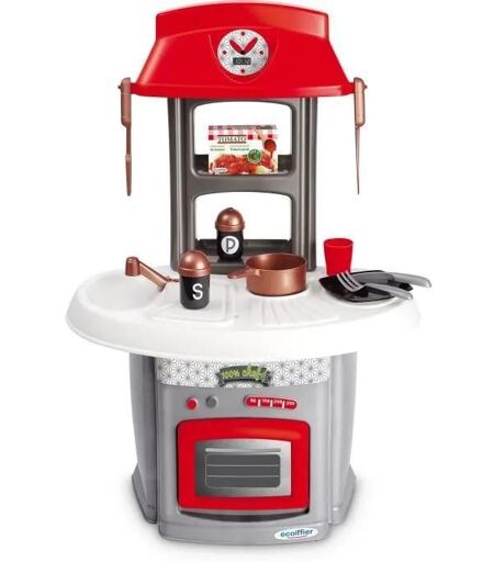 Pour faire ses premiers pas en cuisine Une adorable petite cuisine fonctionnelle et complète. Tout ce qu'il faut aux cuisiniers en herbe Cette cuisine comprend : 1 four 1 évier 1 planche à découper 1 plaque de cuisson De nombreux accessoires Place aux petits cuistots Jouets Ecoiffier propose aux enfants des reproductions fidèles des ustensiles de cuisine et des appareils culinaires des adultes pour cuisiner comme de vrais chefs. Jouer pour mieux grandir En imitant les adultes et en manipulant différents jouets, les enfants apprennent à appréhender le monde qui les entoure, devenant ainsi plus habiles et autonomes au quotidien. Des jouets origine France garantie Jouets Ecoiffier est une entreprise familiale qui fabrique tous ses jouets en France. ...