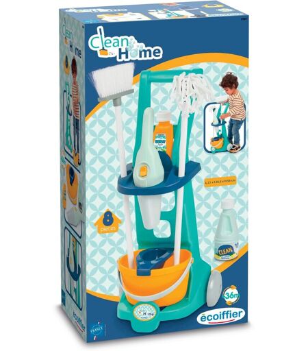 Faire le ménage devient un plaisir Avec ce chariot, votre enfant pourra s'amuser à nettoyer la maison comme ses parents ! Un chariot complet Ce chariot regroupe tous les accessoires nécessaires pour une maison impeccable : Un balai espagnol avec son seau équipé d¿une essoreuse Un balai Un aspirateur à main Deux flacons de produits ménagers Avec Clean Home, le ménage est un jeu d¿enfant La gamme Clean Home propose des accessoires ménagers réalistes et adaptés aux petites mains des enfants. Avec eux, les corvées deviennent ludiques ! Jouer pour mieux grandir C'est en imitant les adultes et en manipulant différents jouets que les enfants apprennent à appréhender le monde qui les entoure, devenant ainsi plus habiles et plus autonomes au quotidien. Des jouets origine France garantie Jouets Ecoiffier est une entreprise familiale qui fabrique tous ses jouets en France. ...