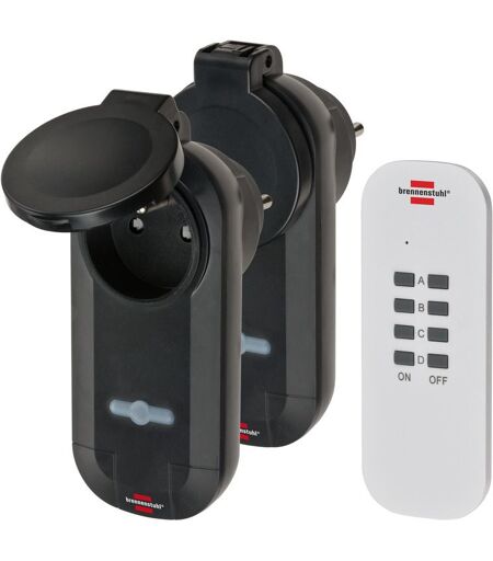 Set de prises télécommandées BRENNENSTUHL Confort-Line - 2 prises pour l'extérieur avec clapet - 1507031