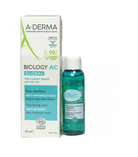 Parapharmacie > Beauté & Soins > Soins Visage > Nettoyants et démaquillants Aderma Biology AC Global Soin Matifiant 40 ml + Gel Moussant 25 ml OFFERT - Nettoyants et démaquillants - Pharmacie en ligne LaSante.net