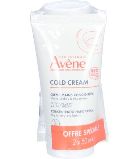 Crème peaux sensibles pour les mains desséchées, sèches à très sèches, gercées, tiraillées ou abîmées par les agressions extérieures (vent, froid, …), elle compense les effets desséchants dus à l’utilisation du gel hydroalcoolique et au lavage excessif de mains. Ce soin nutritif à la texture enveloppante et au parfum léger prévient les gerçures et rugosités, les engelures et la sécheresse cutanée. Il protège et hydrate la peau, et laisse sur les mains un fini doux, non gras et non collant. Sa nouvelle formule sensorielle avec 99% d’ingrédients d’origine naturelle hydrate intensément pendant 24h, nourrit et protège les mains irritées, fissurées et crevassées. Grâce au cold cream, actif au cœur de la gamme, créé par Galien — célèbre médecin grec de l’Antiquité — dont les Laboratoires Dermatologiques Avène ont modernisé la formule traditionnelle pour le rendre naturel et l’adapter aux peaux sensibles, ce soin hydrate et apaise, protège du froid et du dessèchement. Le « cold cream » dépose sur la peau une couche protectrice pour compenser le déficit en sébum du film hydrolipidique, et préserver la barrière cutanée. La peau retrouve souplesse et confort. Les soins au « cold cream » sont recommandés pour lutter contre les tiraillements, et les sensations inconfortables des peaux déshydratées. Véritable soin réconfort et résistant à l’eau, il s'utilise au quotidien dès l'âge de 2 ans, protège, nourrit, apaise et restaure. Son packaging est éco-conçu.BénéficesNOURRIT : Nutrition durable 24h et en profondeurHYDRATE : immédiatement et intensément pendant 24hPROTÈGE : la peau est protégée grâce à sa composition à base de Cold cream d'origine naturelleIndicationIdéal pourEnfants - famille - adolescents - adultesÂgeÀ partir de 2 an(s)Type de peauPeau très sèche - peau sècheApplicationFréquence d’utilisationAussi souvent que nécessaireUtilisation :Etalez Cold Cream Crème mains concentrée dans les mains puis appliquez sur le dessus des mains par de légers massages.Astuce de l'expert:En cas de mains très sèches et /ou irritées, déposez par de légers tapotements avant d'étaler délicatement.IngrédientsAVENE THERMAL SPRING WATER (AVENE AQUA). GLYCERIN. CAPRYLIC/CAPRIC TRIGLYCERIDE. BETAINE. CARTHAMUS TINCTORIUS (SAFFLOWER) SEED OIL (CARTHAMUS TINCTORIUS SEED OIL). BUTYROSPERMUM PARKII (SHEA) BUTTER (BUTYROSPERMUM PARKII BUTTER). CETEARYL ALCOHOL. ARACHIDYL ALCOHOL. GLYCERYL DIBEHENATE. BEESWAX (CERA ALBA). GLYCERYL STEARATE. SIMMONDSIA CHINENSIS (JOJOBA) SEED OIL (SIMMONDSIA CHINENSIS SEED OIL). ARACHIDYL GLUCOSIDE. BEHENYL ALCOHOL. BISABOLOL. CAPRYLYL GLYCOL. CETEARYL GLUCOSIDE. CETYL ALCOHOL. CITRIC ACID. FRAGRANCE (PARFUM). GLYCERYL BEHENATE. HELIANTHUS ANNUUS (SUNFLOWER) SEED OIL (HELIANTHUS ANNUUS SEED OIL). SODIUM BENZOATE. TOCOPHEROL. TRIBEHENIN. WATER (AQUA). XANTHAN GUM ...