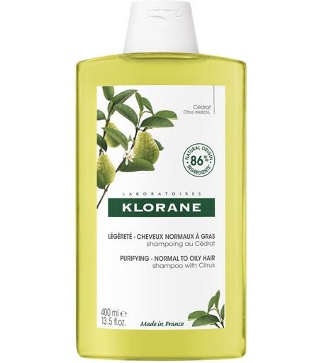 Le Shampoing au Cédrat, nettoie et prend soin des cheveux normaux qui regraissent vite en leur apportant légèreté et tonus. Il libère le cuir chevelu de l'excès de sébum pour révéler des cheveux plein de vitalité, dès la première application. Sa formule unique, adaptée à un usage fréquent, associe un actif séborégulateur à la pulpe de Cédrat, agrume ancestral cultivé sous le soleil corse, agissant comme un pur concentré de vitalité et de légèreté, dans un revigorant parfum citronné. Le Shampoing assainissant à la pulpe de Cédrat apporte légèreté aux cheveux qui restent propres plus longtemps. Résultats Insuffle légèreté, vitalité et tonus pour des cheveux propres plus longtemps. 87% cheveux purifiés¹ 85% cheveux légers¹ -98% de cheveux gras² ¹% de satisfaction, test d’usage consommateur, 71 sujets, 3 semaines d’utilisation. ²Etude ouverte monocentrique, non comparative, 32 sujets. Evolution Score clinique de l’effet séboréducteur après 1 shampoing. Bénéfices Nettoie : formulé pour un usage fréquent, ce concentré de vitalité nettoie et assainit efficacement. Tonifie: le Cédrat tonifiant et assainissant contribue à apporter légèreté, tonus et vitalité aux cheveux dans un rafraichissant parfum aux notes citronné. Assainit : libère de l’excès de sébum et purifie le cuir chevelu dès la première application. Indications Adolescents, adultes Cheveux normaux, cheveux gras, cuir chevelu gras Conseils d'utilisation Quotidien. Appliquer sur les cheveux et le cuir chevelu humides. Faire mousser le shampoing et masser délicatement. Rincer les cheveux et le cuir chevelu. Principaux actifs Le Cédrat apporte légèreté, tonus et vitalité aux cheveux regraissant vite, élimine pollution et calcaire. Rend les cheveux propres plus longtemps. Composition WATER (AQUA)*. DISODIUM LAURETH SULFOSUCCINATE. DECYL GLUCOSIDE*. LAURYL BETAINE. CETEARETH-60 MYRISTYL GLYCOL. LACTIC ACID*. LAURETH-3. GLYCERYL LAURATE*. PENTYLENE GLYCOL*. CITRUS MEDICA VULGARIS FRUIT EXTRACT*. FRAGRANCE (PARFUM). GLUTAMIC ACID*. GLYCERIN*. HEXYL CINNAMAL. LIMONENE. MALEIC ACID. SODIUM BENZOATE. SODIUM CHLORIDE. SODIUM HYDROXIDE*. TRISODIUM ETHYLENEDIAMINE DISUCCINATE. YELLOW 5 (CI 19140) 86% d'ingrédients d'origine naturelle. Conditionnement Flacon de 400 ml ...