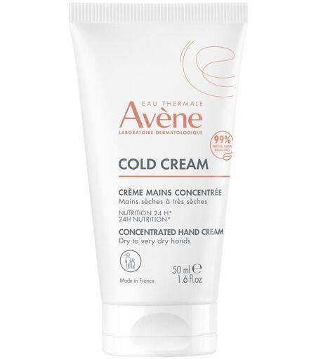 Crème peaux sensibles pour les mains desséchées, sèches à très sèches, gercées, tiraillées ou abîmées par les agressions extérieures (vent, froid, …), elle compense les effets desséchants dus à l’utilisation du gel hydroalcoolique et au lavage excessif de mains. Ce soin nutritif à la texture enveloppante et au parfum léger prévient les gerçures et rugosités, les engelures et la sécheresse cutanée. Il protège et hydrate la peau, et laisse sur les mains un fini doux, non gras et non collant. Sa nouvelle formule sensorielle avec 99% d’ingrédients d’origine naturelle hydrate intensément pendant 24h, nourrit et protège les mains irritées, fissurées et crevassées. Grâce au cold cream, actif au cœur de la gamme, créé par Galien — célèbre médecin grec de l’Antiquité — dont les Laboratoires Dermatologiques Avène ont modernisé la formule traditionnelle pour le rendre naturel et l’adapter aux peaux sensibles, ce soin hydrate et apaise, protège du froid et du dessèchement. Le « cold cream » dépose sur la peau une couche protectrice pour compenser le déficit en sébum du film hydrolipidique, et préserver la barrière cutanée. La peau retrouve souplesse et confort. Les soins au « cold cream » sont recommandés pour lutter contre les tiraillements, et les sensations inconfortables des peaux déshydratées. Véritable soin réconfort et résistant à l’eau, il s'utilise au quotidien dès l'âge de 2 ans, protège, nourrit, apaise et restaure. Son packaging est éco-conçu.BénéficesNOURRIT : Nutrition durable 24h et en profondeurHYDRATE : immédiatement et intensément pendant 24hPROTÈGE : la peau est protégée grâce à sa composition à base de Cold cream d'origine naturelleIndicationIdéal pourEnfants - famille - adolescents - adultesÂgeÀ partir de 2 an(s)Type de peauPeau très sèche - peau sècheApplicationFréquence d’utilisationAussi souvent que nécessaireUtilisation :Etalez Cold Cream Crème mains concentrée dans les mains puis appliquez sur le dessus des mains par de légers massages.Astuce de l'expert:En cas de mains très sèches et /ou irritées, déposez par de légers tapotements avant d'étaler délicatement.IngrédientsAVENE THERMAL SPRING WATER (AVENE AQUA). GLYCERIN. CAPRYLIC/CAPRIC TRIGLYCERIDE. BETAINE. CARTHAMUS TINCTORIUS (SAFFLOWER) SEED OIL (CARTHAMUS TINCTORIUS SEED OIL). BUTYROSPERMUM PARKII (SHEA) BUTTER (BUTYROSPERMUM PARKII BUTTER). CETEARYL ALCOHOL. ARACHIDYL ALCOHOL. GLYCERYL DIBEHENATE. BEESWAX (CERA ALBA). GLYCERYL STEARATE. SIMMONDSIA CHINENSIS (JOJOBA) SEED OIL (SIMMONDSIA CHINENSIS SEED OIL). ARACHIDYL GLUCOSIDE. BEHENYL ALCOHOL. BISABOLOL. CAPRYLYL GLYCOL. CETEARYL GLUCOSIDE. CETYL ALCOHOL. CITRIC ACID. FRAGRANCE (PARFUM). GLYCERYL BEHENATE. HELIANTHUS ANNUUS (SUNFLOWER) SEED OIL (HELIANTHUS ANNUUS SEED OIL). SODIUM BENZOATE. TOCOPHEROL. TRIBEHENIN. WATER (AQUA). XANTHAN GUM ...