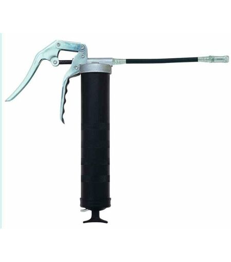 PISTOLETS MANUELS DE GRAISSAGE pour cartouches 400 grs et graisse en vrac PISTOLET MANUEL DE GRAISSAGE EQUIPE d'un FLEXIBLE 270 mm et d'une AGRAFE 4 MORS. Ø corps de pompe : 57 mm Longueur hors tout : 350 mm Débit : 0,9 cm3/coup Pression : 300 bars Poids : 1,260 kg ...