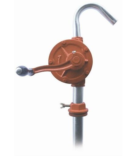 POMPE ROTATIVE en fonte, AUTO AMORCANTE pour TRANSFERT D'HUILE, GASOIL et FUEL. Equipée d'un TUBE PLONGEUR et d'un BEC COUDE METALLIQUE. ...