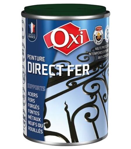 La peinture brillante Direct Fer de 250 mL en coloris vert mousse RAL6005 de la marque Oxi est une peinture brillante, lisse destinée à la décoration des fers neufs ou anciens même rouillés sans sous-couche. Elle s’applique aussi en intérieur qu’en extérieur sur fers forgés, grilles, mobiliers de jardin, objets décoratifs, luminaires, objets anciens... Excellente protection antirouille. Très bonne résistance aux chocs et aux agressions extérieures. Peinture prête à l’emploi. Bien remuer avant l'utilisation à l’aide d’une spatule large en insistant sur le fond du pot afin d’obtenir un mélange homogène. Appliquer par des températures comprises entre 10 et 25°C, sans humidité et hors courant d’air. Ne pas appliquer sur des supports surchauffés (en plein soleil) ou en cas de risque de pluie. L'humidité ambiante excessive et le manque de ventilation ralentit le séchage de la peinture. Sur les anciennes peintures, prévoir un dépolissage au papier de verre grain 320 puis dépoussiérer. Sur ...