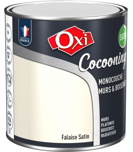 La peinture COCOONING MURS ET BOISERIES est destinée à la décoration et à la rénovation des pièces de la maison (chambres, séjours, salles à manger...). Elle s'utilise en intérieur sur les murs, plafonds, boiseries, menuiseries, radiateurs et en général sur tous supports en bon états. Destination : Plâtres, plaques de plâtres, bois, toile de verre, papiers à peindre, objets métalliques... Propriétés : Cette peinture est une peinture monocouche, elle ne laisse pas de trace de reprise et à un fort pouvoir couvrant lorsque vous l'appliquez. Recommandations avant application : Bien remuer avant utilisation à l'aide d'une spatule large en insistant sur le fond du pot afin d'obtenir un mélange homogène. • Peinture prête à l'emploi. Un ajustement avec de l'eau est envisageable pour faciliter l'application ou en première passe sur un support poreux. Ne pas dépasser 10% d'eau. • Appliquer par des températures comprises entre 10 et 25°C, sans humidité et hors courant d'air. • L'humidité ...