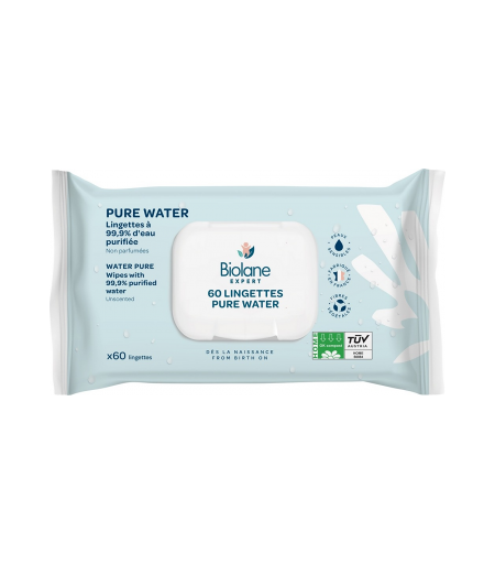 Parapharmacie > Bébé & Maman > Hygiène bébé > Produits de toilette bébé > Lingettes nettoyantes bébé Biolane Pure Water Lingettes non Parfumées Lingettes x 60