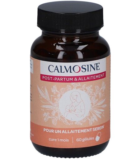 Complément alimentaire à utiliser dans le cadre d’une alimentation variée, équilibrée et d’un mode de vie sain.Calmosine Post-Partum & Allaitement est un complément alimentaire formulé pour accompagner les jeunes mamans dès le début de l’allaitement. Sa formule 5-en-1 soutient la vitalité, l’équilibre émotionnel, la beauté de la peau et des cheveux, et contribue à une lactation naturelle. Enrichi en vitamines B, C, A, D, en magnésium, zinc, iode et huile de poisson microencapsulée, il apporte des nutriments essentiels pour la mère et le bébé. L’extrait d’origan et le malt d’orge soutiennent naturellement la production de lait. Un pilulier contient 60 capsules pour 1 mois de cure.IngrédientsMagnésium, Cellulose (agent de charge), Capsule végétale (hypromellose, colorant : rouge de betterave), Huile de POISSON microencapsulée (oméga 3), Extrait de malt d’ORGE (Hordeum vulgare), Vitamine C, Zinc (bisglycinate de zinc), Sels de magnésium d’acides gras (antiagglomérant), Choline (chlorure de choline), Vitamine A, Extrait d’origan (Origanum vulgare), Vitamine B12, Vitamine D, Vitamine B6, Vitamine B1, Vitamine B9 (acide folique), Iode (iodure de potassium).Allergènes : Gluten, Poisson.Valeurs nutritionnelles Pour 2 capsules% VNR* Magnésium150 mg40 % Huile de poisson microencapsulée150 mg- dont Oméga 347,4 mg- Extrait de malt d’orge60 mg- Vitamine C40 mg50 % Zinc10 mg100 % Choline15 mg- Vitamine A800 µg100 % Extrait d’origan6 mg- Vitamine B122,5 µg100 % Vitamine D5 µg100 % Vitamine B61,4 mg100 % Vitamine B11,1 mg100 % Vitamine B9 (acide folique)200 µg100 % Iode150 µg100 % Conseils d'utilisationPrendre 2 capsules par jour avec un grand verre d’eau, de préférence le matin. Le traitement peut être poursuivi aussi longtemps que nécessaire.Précautions d'emploiNe pas dépasser la dose journalière recommandée. Réservé à l’adulte. Déconseillé aux personnes souffrant de troubles thyroïdiens. À utiliser dans le cadre d’une alimentation variée et équilibrée et d’un mode de vie sain. Tenir hors de portée des enfants.Poids net60 capsulesAdresse du FabricantCalmosine ...