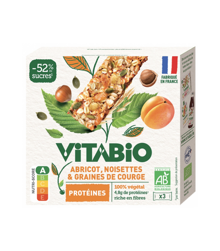 Parapharmacie > Compléments alimentaires > Sport Vitabio Abricot Noisettes & Graines de Courge Protéines Bio 3 Barres
