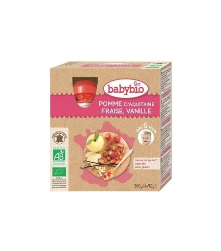 Babybio Mes fruits Gourde Pomme Fraise Vanille Bio 6 mois 4x90g ...