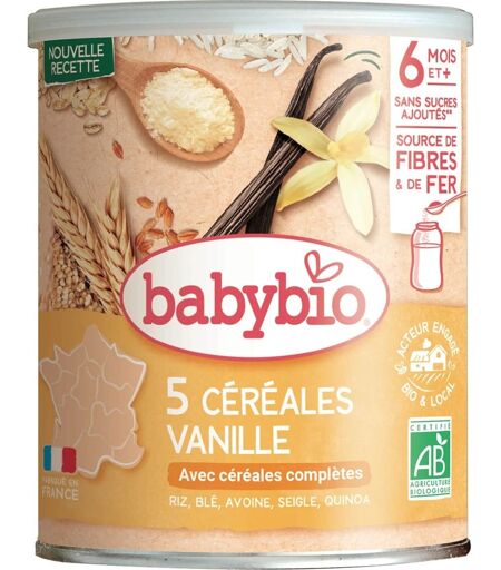 Babybio 5 Céréales Vanille Bio 6m+ Bio 220g