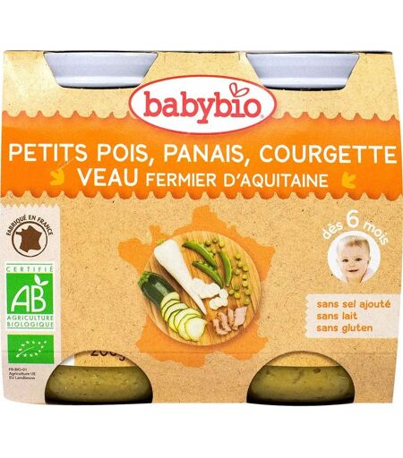 Babybio Petits Pots Menu Petits Pois Panais Courgette & Veau Bio dès 6 Mois 2x200g ...