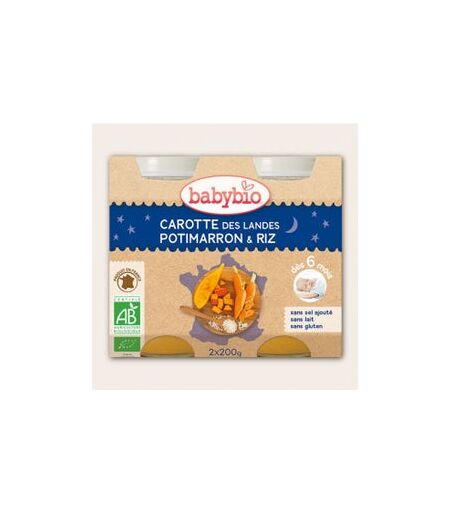 Babybio Petits Pots Bonne Nuit Carotte Potimarron Riz Bio 6 mois 2 x 200 g ...