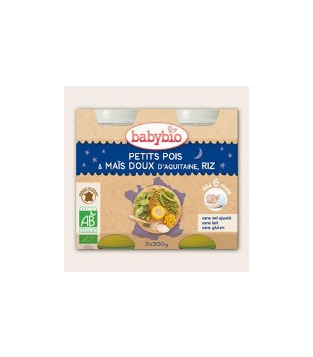 Babybio Petits Pots Bonne Nuit Petits Pois Maïs Riz Bio 6 mois 2 x 200 g ...