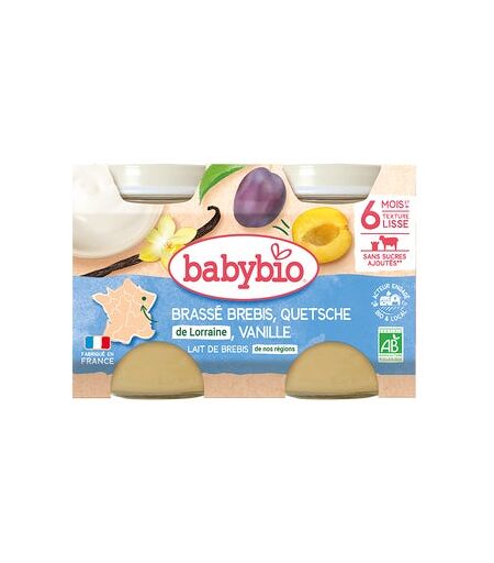 BabyBio Brassé Au Lait De Brebis, Quetsche de Lorraine et Vanille 2x130g