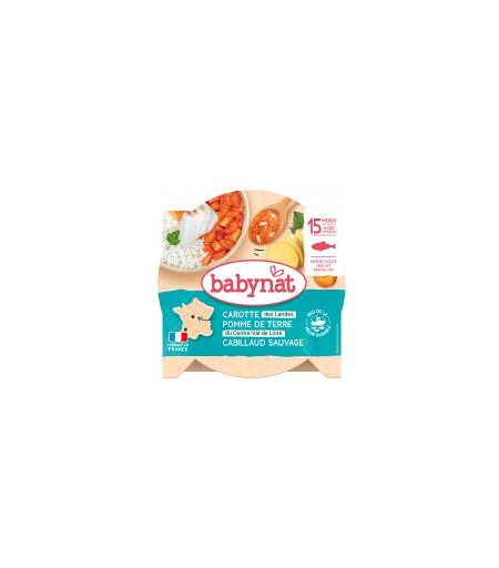 Babybio Babynat Pomme de Terre Carotte Cabillaud Sauvage 15 Mois et + 260 g - Carton 1 assiette de 260 g