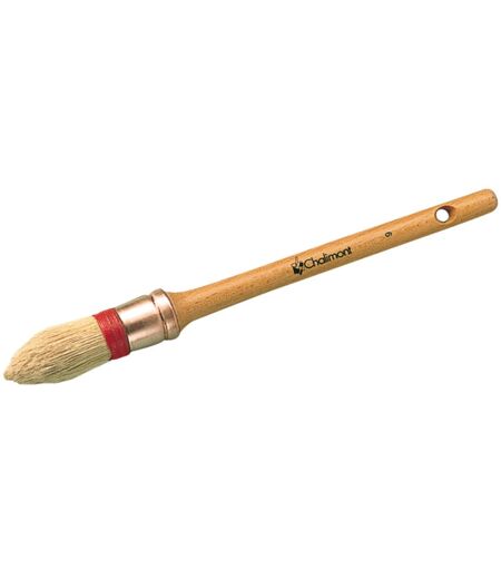 Brosse à rechampir Taille 2 Sortie Fibres 62mm Ø21mm Mélange soies et synthétique. Montée sur fleur. Virole cuivre. Double sertissage. Collet ficelle rouge long sur les tailles 2 à 8. Manche bois verni. PEFC ...