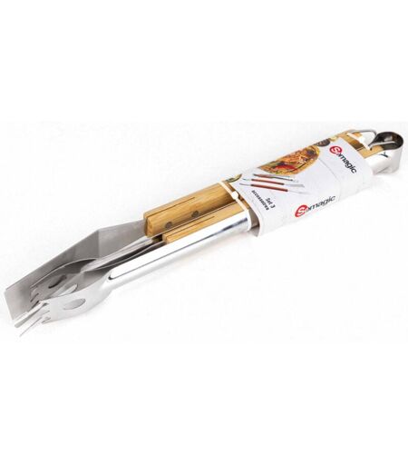 Description commerciale Set de 3 ustensiles de barbecue comprenant une spatule, une pince et une fourchette. Longueur : 36 cm. Composition : Acier inoxydable et bambou. Description technique Données techniques Marque : SOMAGIC Fournisseur : SOMAGIC ...