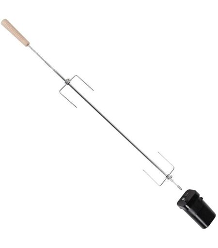 Tournebroche complet pour cuisson rôtissoire.1 broche en acier chromé avec longueur utile de 70 cm.1 manche en bois.1 lot de 2 fourchettes luxes.1 moteur éléctrique luxe fonctionnant avec 2 piles LR20 non fournies.Convient pour les barbecues à charbon de bois avec cuve en fonte modèles BAYAMO, MEGA et GIGA. ...