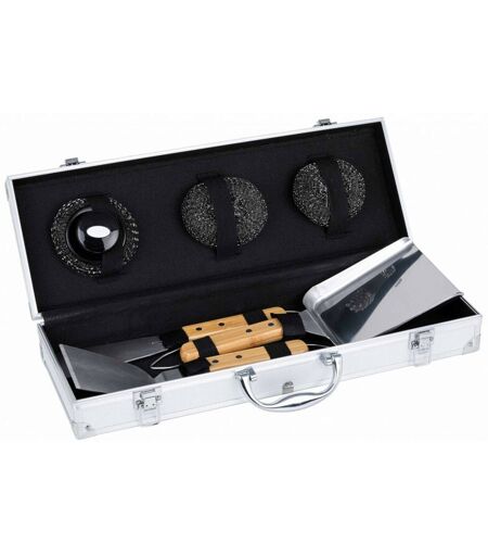valisette aluminium spéciale plancha 4 accessoires Comprenant une spatule, un grattoir, une brosse, deux tampons de rechange pour récurer la plancha et une pelle à légumes ...