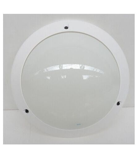 Hublot extérieur LED 16W polycarbonate blanc Ø 309mm anti-vandale à détecteur hyperfrequance lumiere 6500K 960lm avec préavis d'extinction + veille étanche IP55 IK10 Chartres Super 400 Sarlam 714453 SPO-AV-LED6500-DTEC-BL-X5. Description détaillée : Luminaire antivandale rond Ø 309mm IP 55 IK 10 (20 joules) Classe II, résistance au fil incandescent à 850C/30sec, équipé de 12 LED de 6500K délivrant un flux lumineux de 960 Lm, avec une efficacité lumineuse de 53 Lm / W et un rendement de 84 %. Fonctionnement automatique avec Détecteur HF intégré + Préavis + Veille : Allumage à 100 % du flux maximum par détection de présence, puis passage en Veille avec un flux lumineux réduit à la fin de la temporisation. Extinction complète du luminaire à la fin de la temporisation de la Veille. Fonction Préavis avec passage d'un niveau à un autre par variation du flux lumineux. Jupe anti-arrachage et diffuseur en polycarbonate (maintenu par clips). Inserts en Laiton, Vis imperdables et anti-démontage ...