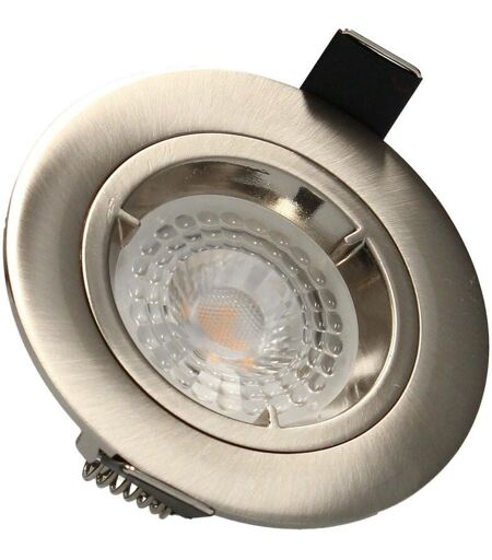 Kit complet comprenant 5 anneaux fixes, 5 ampoules GU10 et 5 douilles avec leur connecteur. Grâce à son anneau de finition en face avant, le montage et le démontage de la lampe peut se faire par un simple 1/4 de tour. Température de couleur Blanc chaud 2700K pour une ambiance chaleureuse. Finition Acier Brossé ...