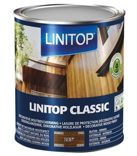 Linitop Classic lasure satin 1 L noyer CARACTERISTIQUESAvertissement : Dangereux. Respectez les précautions d'emploi. Fiche produit constructeur / fournisseur : https://static.findis.fr/data/articles/1072283/fiche-produit-2314.pdf Produit avec fiche de sécurité : oui LABELSEmissions dans l'air intérieur : A+ ...