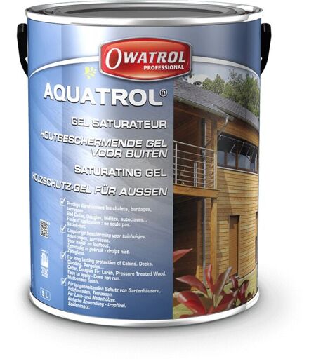 Saturateur Aquatrol d'Owatrol Pro est un saturateur formulé en gel, aspect Mat. A base d'eau et de résines hybrides, il est très facile à appliquer, il apporte une grande protection du bois et une haute tenue dans le temps, il laisse un aspect huilé mat. il est non filmogène et il empêche le noircissement du bois, et conserve un aspect naturel du bois pour longtemps. Protège le bois des intempéries et du soleil. Produit destiné aux bois extérieurs, chalets, terrasses et bardages bois. il est spécialement conçu pour les bois tendres, pin, douglas, red cedar, sapin et autres résineux. il est compatible avec les bois autoclaves. Nettoyage des outils à l'eau. Conditionnement : 5 L Finition Mat Teintes au choix : Application : Brosse, rouleau ou pistolet. Consommation : 10 à 15 m² / litre et par couche ...