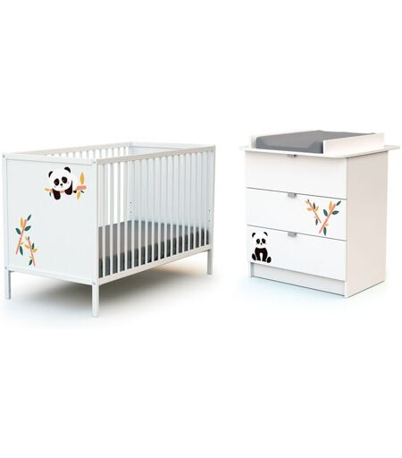 Webaby - Chambre bébé lit et commode à langer en bois alba