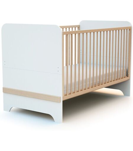 AT4 - Lit bébé évolutif en bois CARROUSEL Blanc et Hêtre Verni 70 x 140 cm