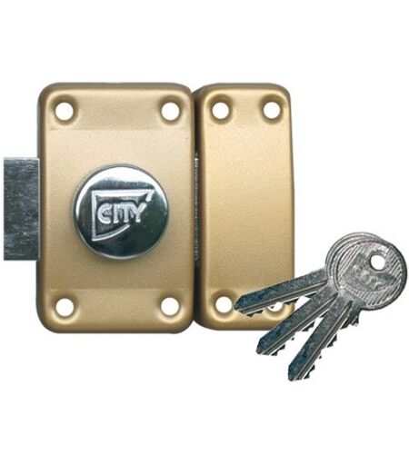 Verrou CITY ART 26 double cylindre CAVERS - 1002 - Verrou de sûreté à bouton bronzé or, dimensions 90 x 56 Cylindre 5 goupilles Ø 23 Pêne acier chromé 110 mm Axe à 45 mm Coffre et gâches acier embouti Livré avec 3 clés (une seule numérotée), vis de pose et entrée laiton - Produit expédié depuis notre plateforme située à Rodez en Aveyron - produit conforme aux normes françaises - ...