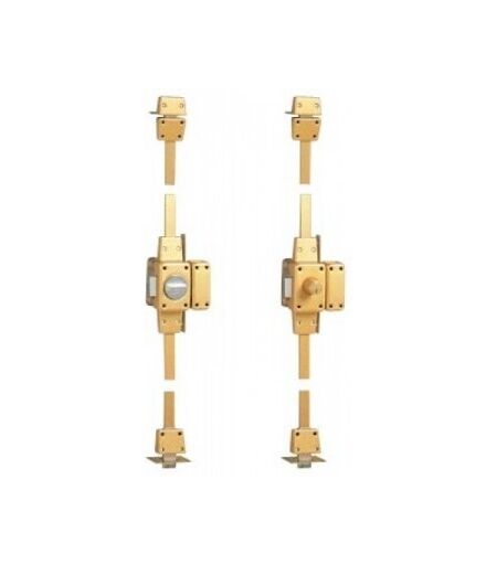 Verrou 3 points à bouton - Cylindre 65 mm - Droite - 15100651HB3 - Verrou avec coffre acier embouti 20/10° métallisé or - Produit expédié depuis notre plateforme située à Rodez en Aveyron - produit conforme aux normes françaises - ...