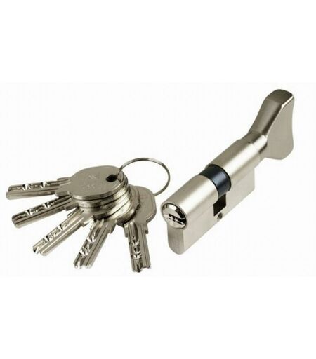 5 clés réversibles en laiton nickelé 6 goupilles Inox Contre-goupilles diabolo anti-crochetage Rotor bombé fraisé limitant les risques de cassure et de torsion Protection anti-perçage dans le stator : 1 goupille en acier traité Ø 1,8 mm Protection anti-arrachement Panneton DIN en acier fritté incliné à 30° Finition : nickelé mat Carte de réapprovisionnement Conforme à la Norme EN 1303:2005 Fabriqué en Italie ...
