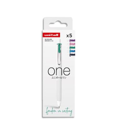 Set de 5 Uni-Ball ONE roller encre gel rétractable - 0,7 mm - coloris assortis - Ecriture moyenne